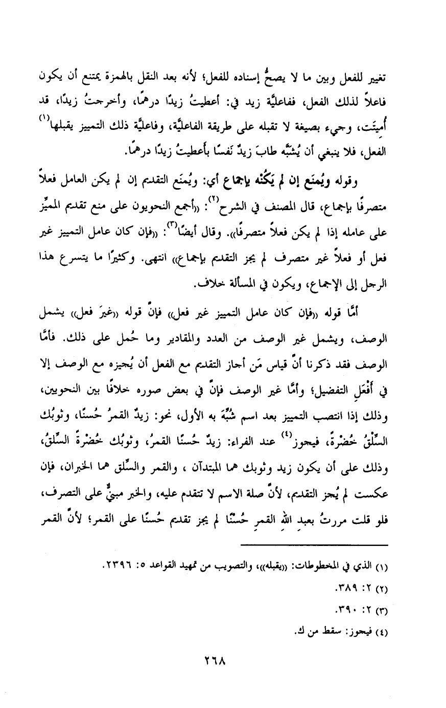 متصرفا باجماع قال المصنف فى الشرح: "أجمع النحويون على منع تقديم المميز
