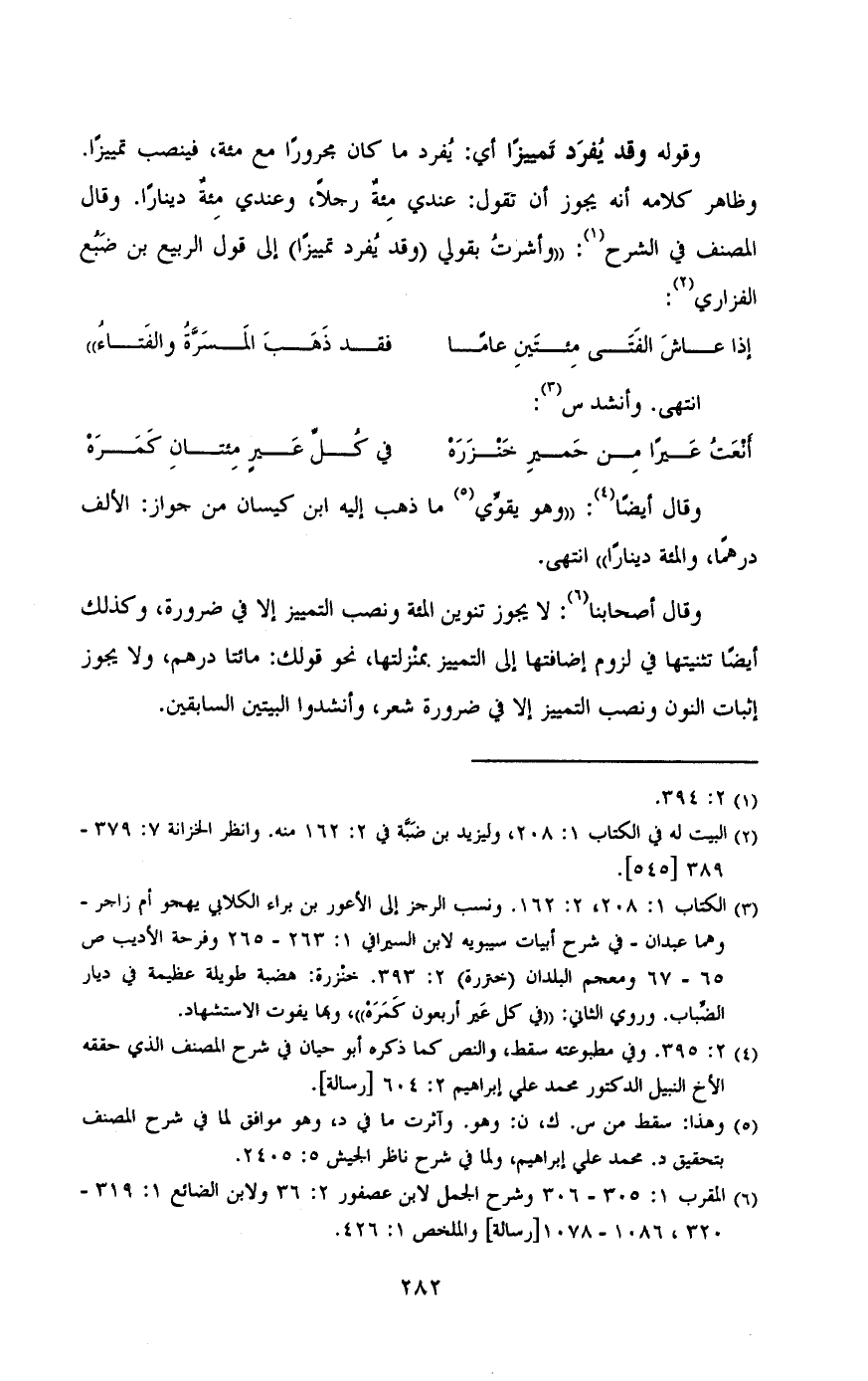 المصنف فى الشرح:"وأشرت بقولى (وقد يفرد تمييزا) الى قول الربيع بن ضبع