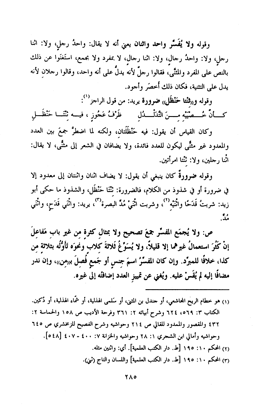 ص: ولا يجمع المفسر جمع تصحيح ولا بمثال كثرة من غير باب مفاعل