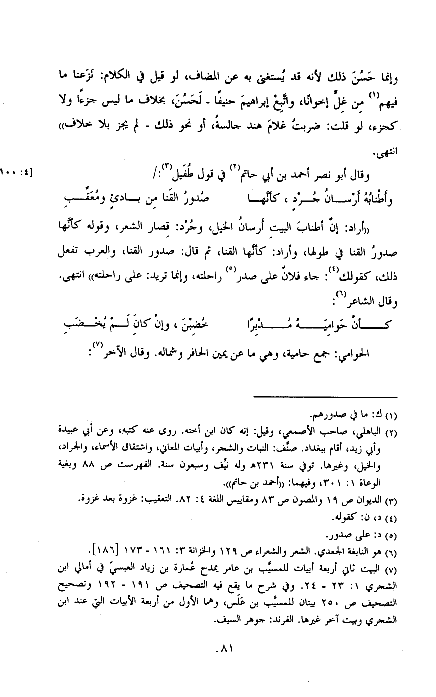 وقال أبو نصر أحمد بن أبى حاتم في قول طفيل:/