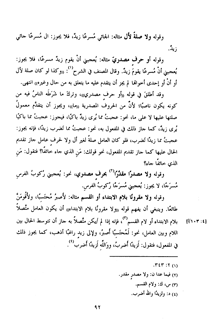 وقوله ولا صلة لأل مثاله: الجائي مسرعا زيد , فلا يجو: ال مسرعا جائي زيد.