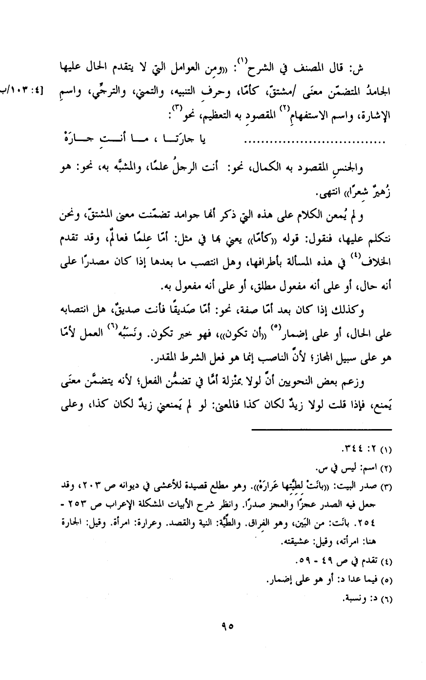 ش: قال المصنف في الشرح: (من العوامل التي لا يتقدم الحال عليها الجامد المتضمن معنى / مشتق , كأما , وحرف التنبيه , والتمني , والترجي , واسم الإشارة , واسم الاستفهام المقصود به التعظيم , نحو: