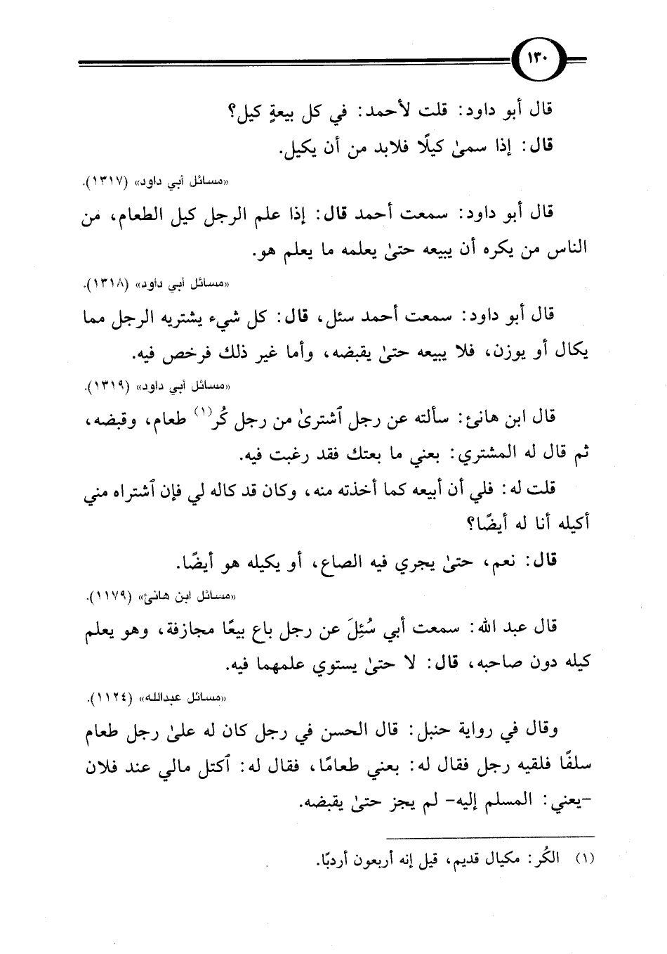 قال أبو داود: سمعت أحمد قال: إذا علم الرجل كيل الطعام، من الناس من يكره أن يبيعه حتى يعلمه ما يعلم هو.