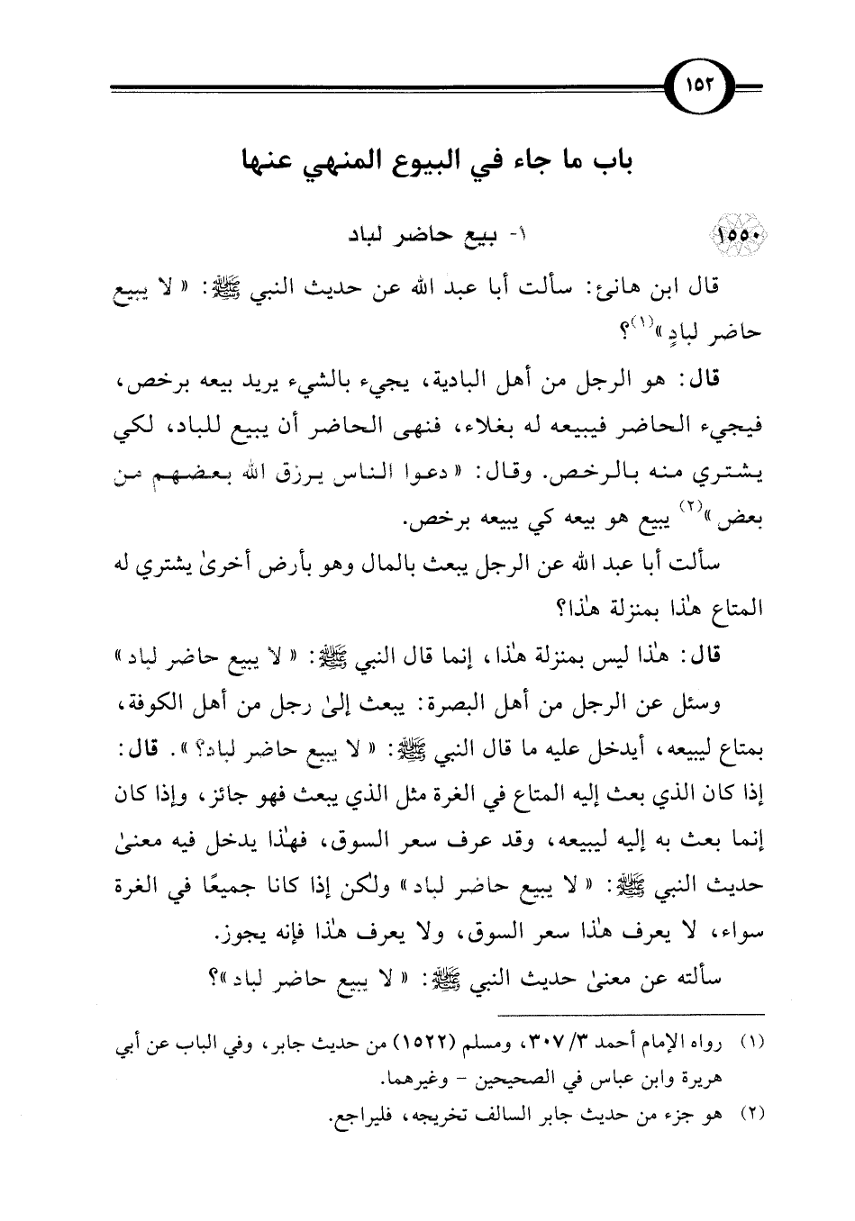 قال ابن هانئ: سألت أبا عبد اللَّه عن حديث النبي -صلى اللَّه عليه وسلم-: "لا يبيع حاضر لبادٍ" (¬1)؟