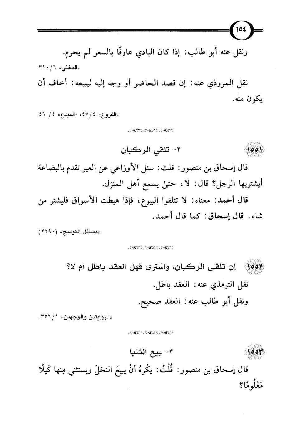 قال إسحاق بن منصور: قُلْتُ: يكْرهُ أنْ يبيعَ النخلَ ويستثني مِنها كَيلًا مَعْلُومًا؟