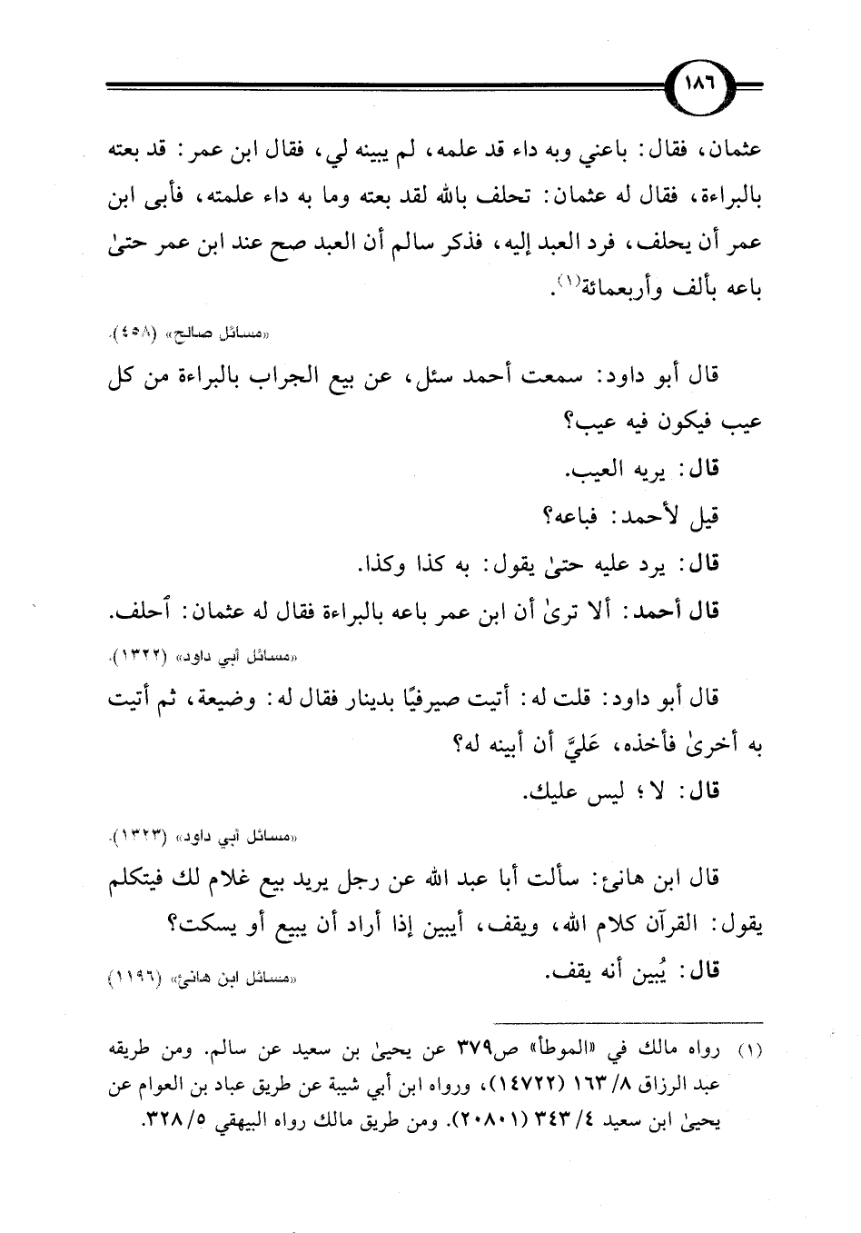 "مسائل ابن هانئ" (1196).