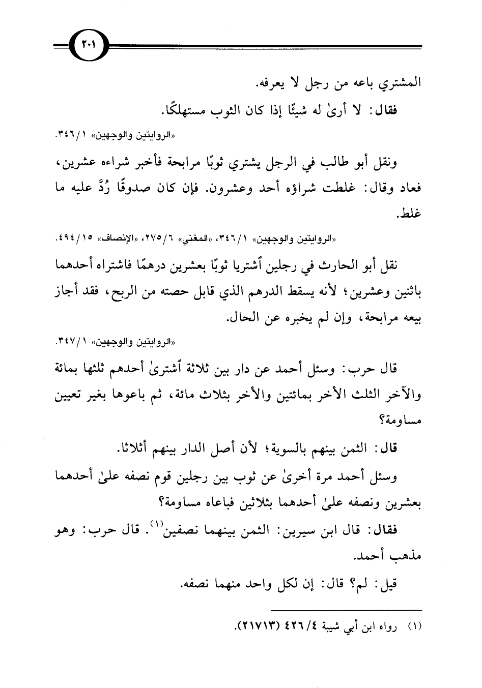 فقال: قال ابن سيرين: الثمن بينهما نصفين (¬1). قال حرب: وهو مذهب أحمد.