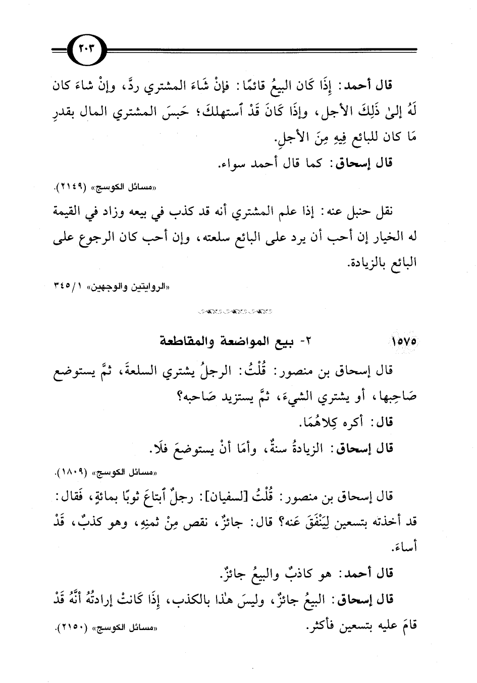 قال إسحاق بن منصور: قُلْتُ: الرجلُ يشتري السلعةَ، ثمَّ يستوضع صَاحِبها، أو يشتري الشيءَ، ثمَّ يستزيد صَاحبه؟