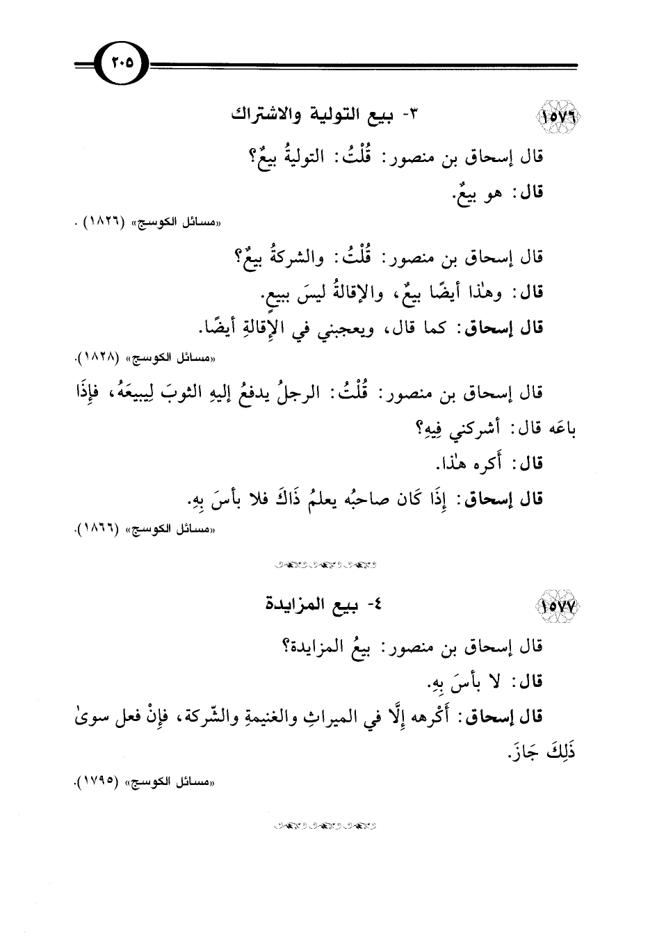 قال إسحاق بن منصور: قُلْتُ: والشركةُ بيعٌ؟