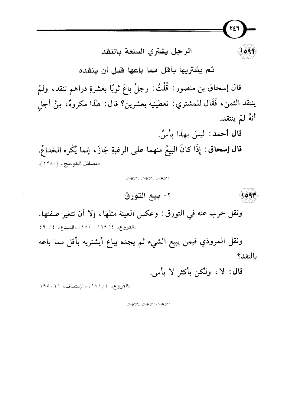 1592 - الرجل يشتري السلعة بالنقد ثم يشتريها بأقل مما باعها قبل أن ينقده