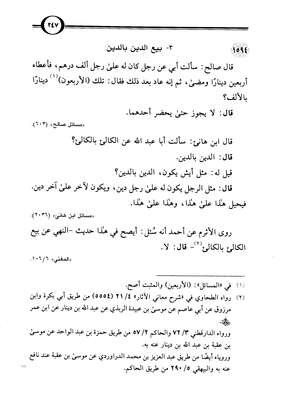 قال ابن هانئ: سألت أبا عبد اللَّه عن الكالئ بالكالئ؟
