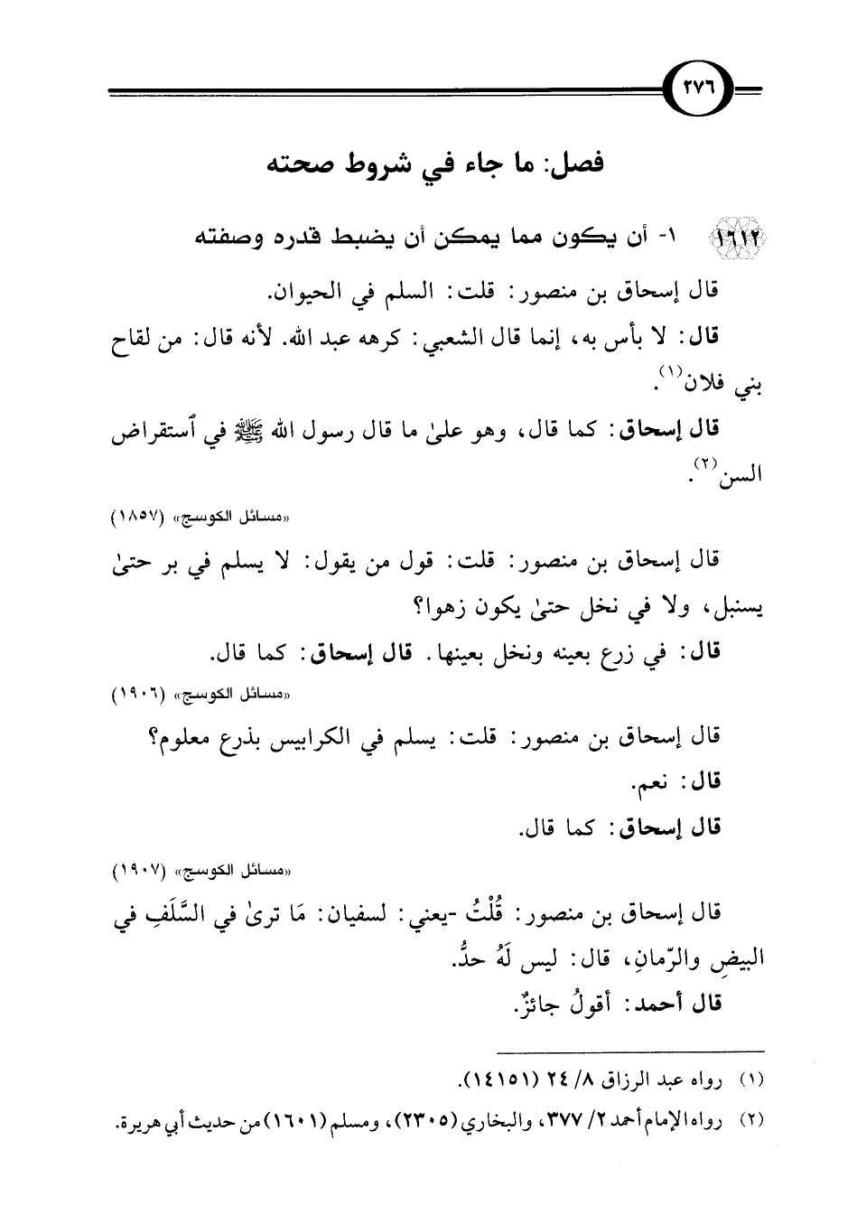 قال إسحاق بن منصور: قلت: السلم في الحيوان.
