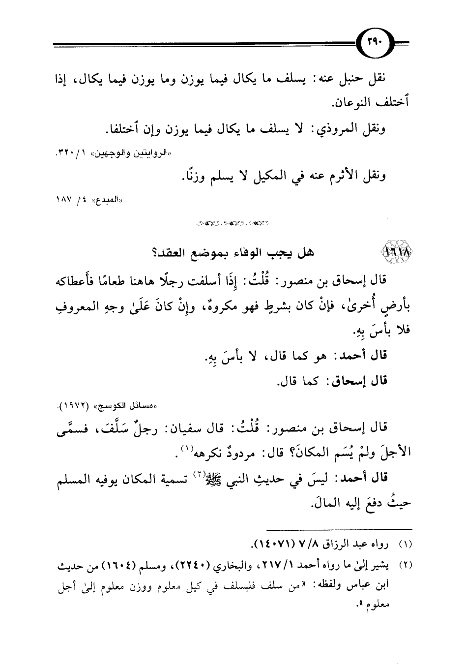 (¬2) يشير إلى ما رواه أحمد 1/ 217، والبخاري (2240)، ومسلم (1604) من حديث ابن عباس ولفظه: "من سلف فليسلف في كيل معلوم ووزن معلوم إلى أجل معلوم".