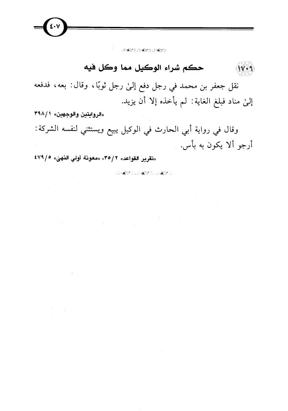 وقال في رواية أبي الحارث في الوكيل يبيع ويستثني لنفسه الشركة: أرجو ألا يكون به بأس.
