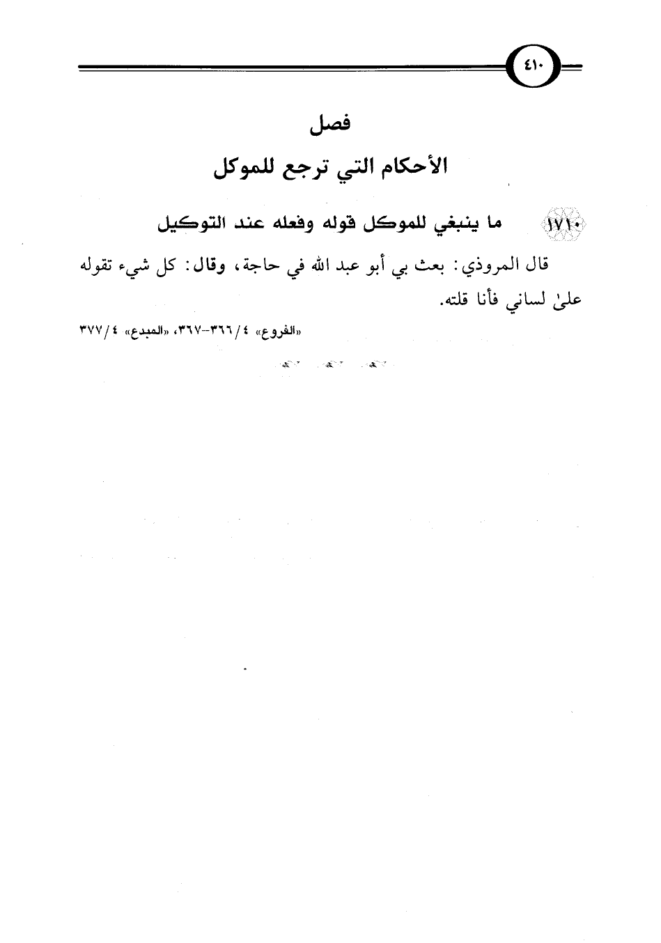 1710 - ما ينبغي للموكل قوله وفعله عند التوكيل