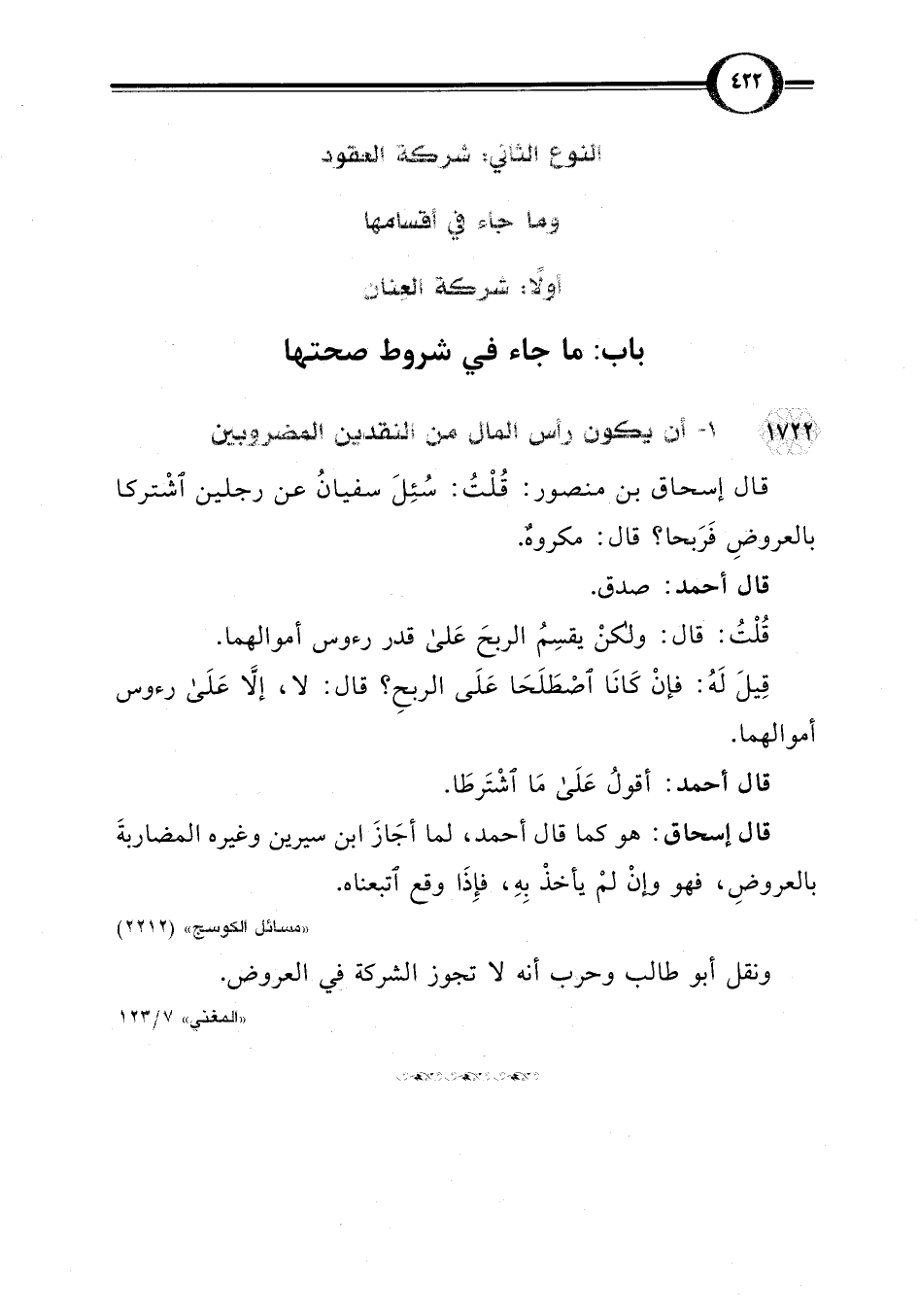 1722 - 1 - أن يكون رأس المال من النقدين المضروبين