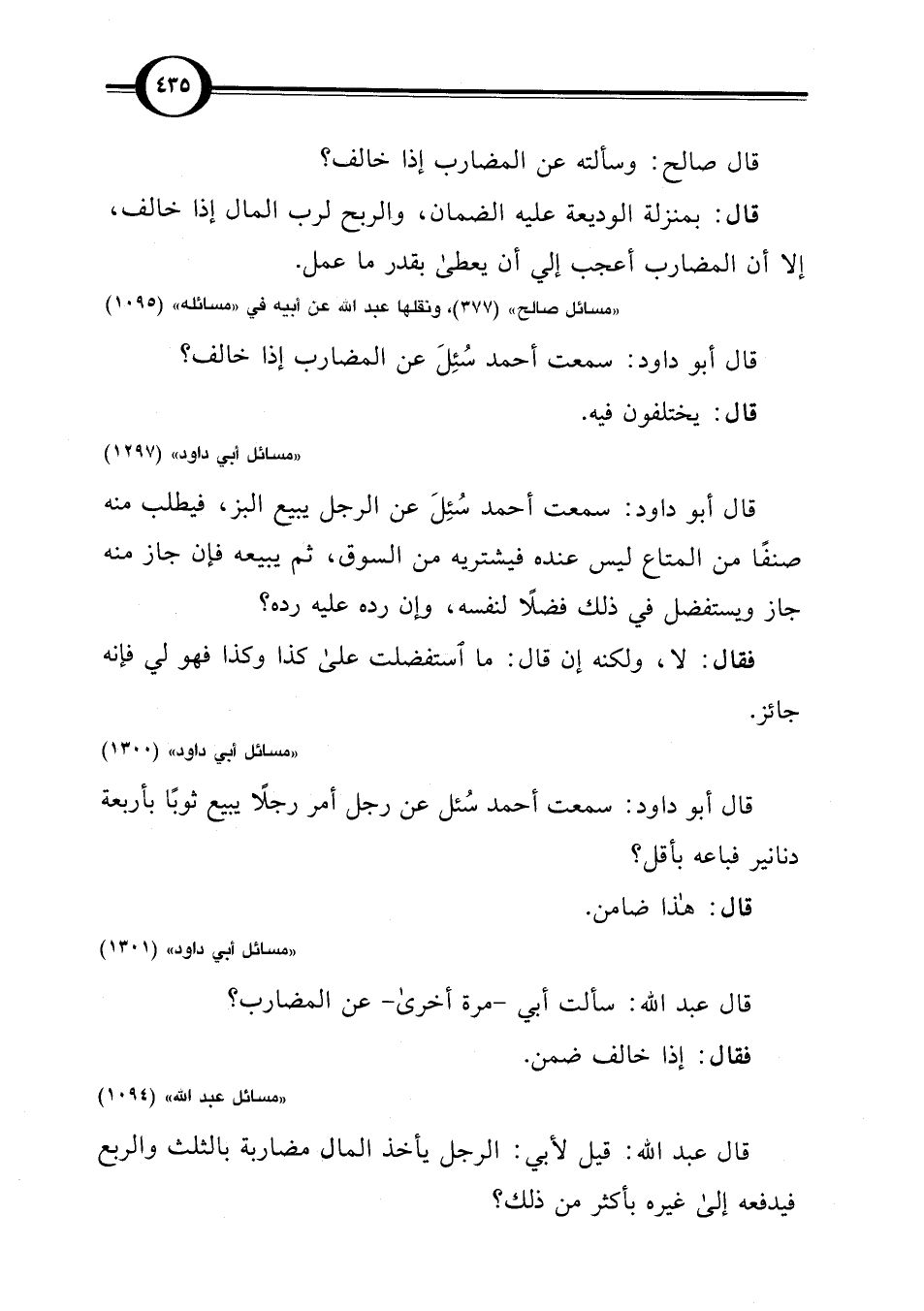 قال أبو داود: سمعت أحمد سُئِلَ عن المضارب إذا خالف؟