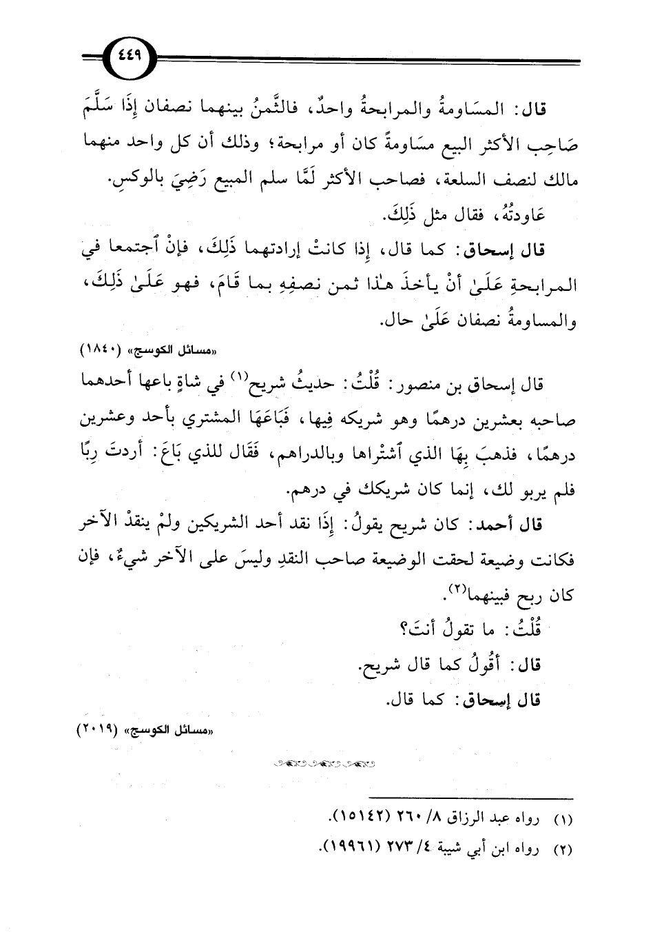 "مسائل الكوسج" (1840)