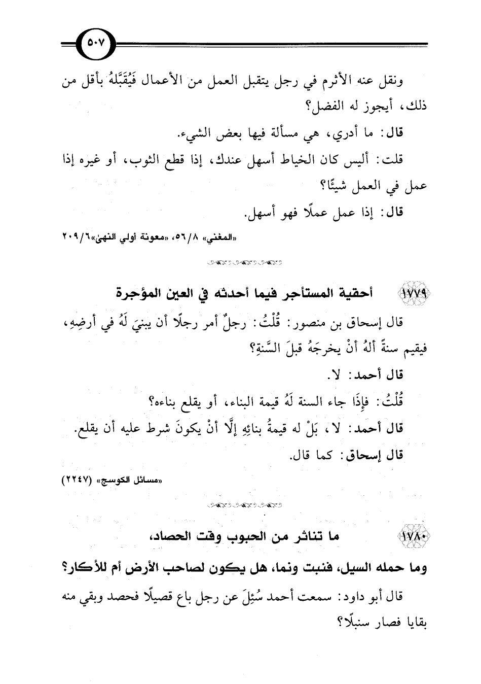 1780 - ما تناثر من الحبوب وقت الحصاد، وما حمله السيل، فنبت ونما، هل يحون لصاحب الأرض أم للأكار؟