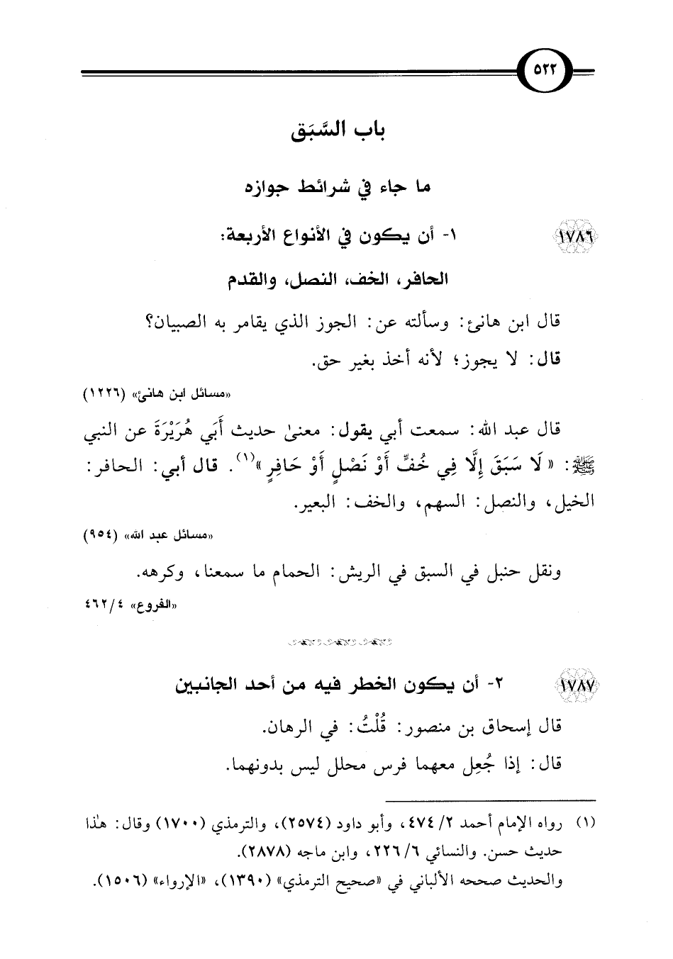 1786 - 1 - أن يكون في الأنواع الأربعة: الحافر، الخف، النصل، والقدم