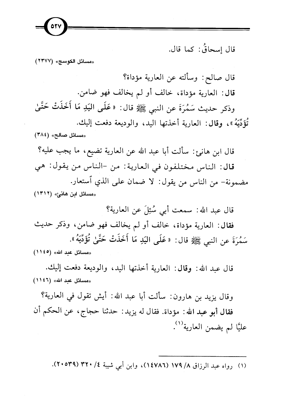 وقال يزيد بن هارون: سألت أبا عبد اللَّه: أيش تقول في العارية؟