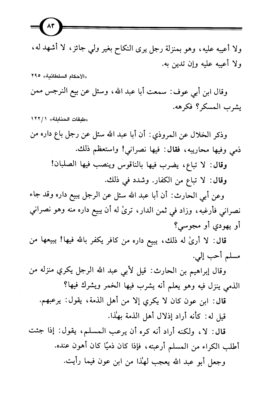 وعن أبي الحارث: أن أبا عبد اللَّه سئل عن الرجل يبيع داره وقد جاء نصراني فأرغبه، وزاد في ثمن الدار، ترى له أن يبيع داره منه وهو نصراني أو يهودي أو مجوسي؟