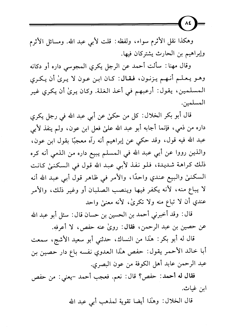قال الخلال: وهذا أيضا تقوية لمذهب أبي عبد اللَّه