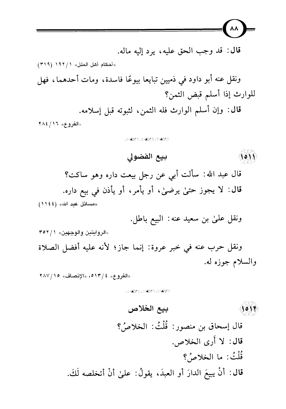 قال إسحاق بن منصور: قُلْتُ: الخلاصُ؟