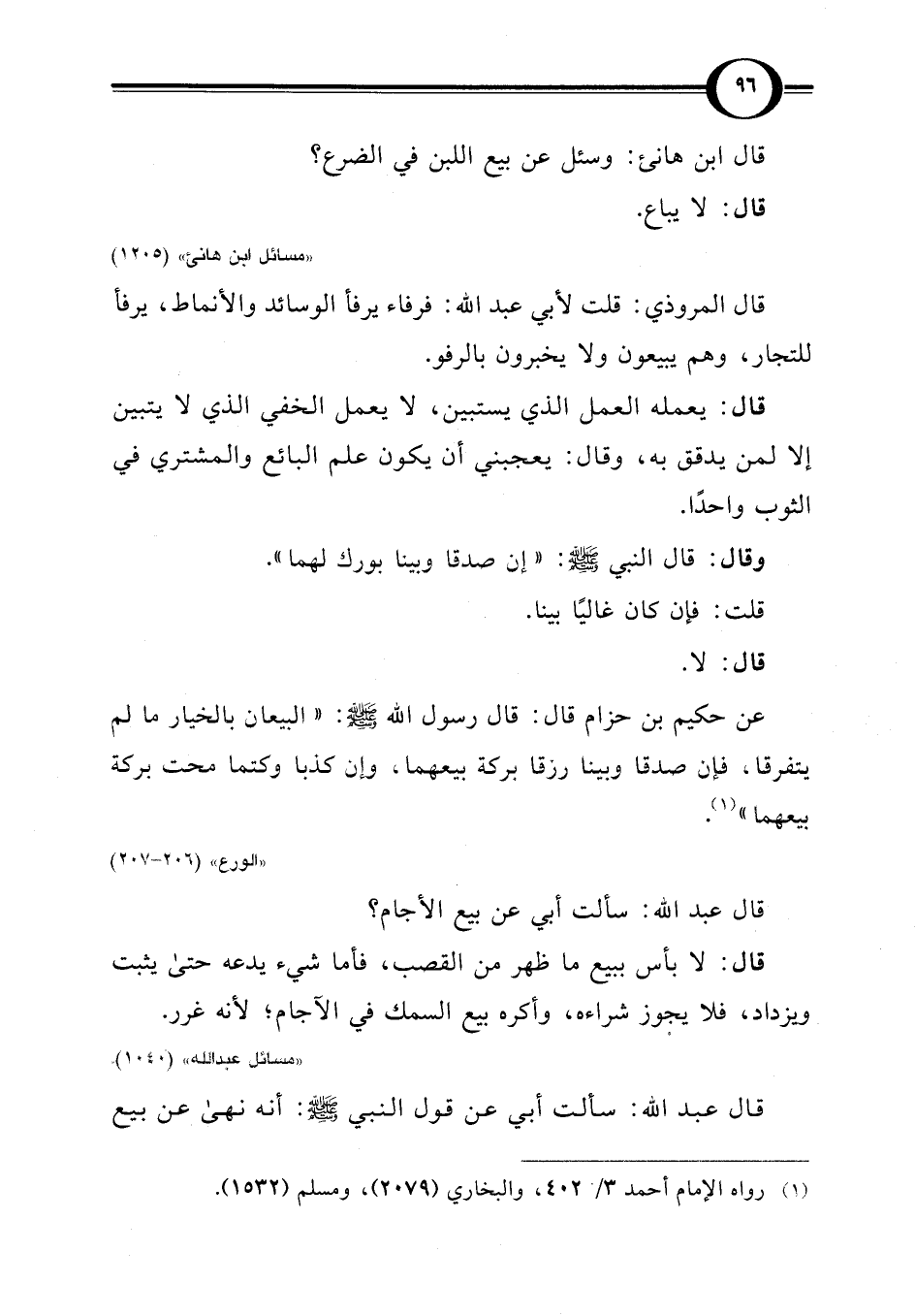قال عبد اللَّه: سألت أبي عن قول النبي -صلى اللَّه عليه وسلم-: أنه نهى عن بيع