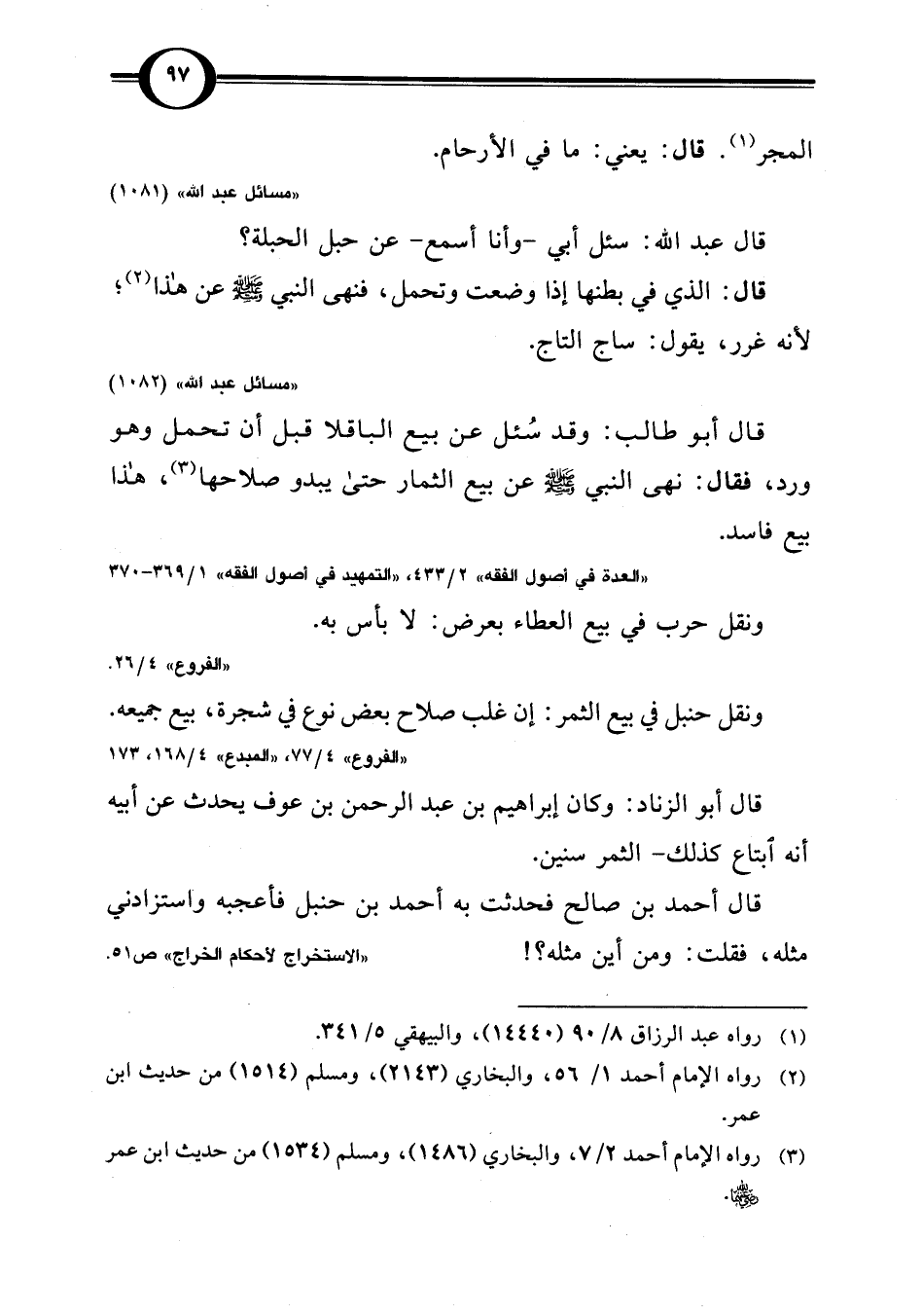 (¬2) رواه الإمام أحمد 1/ 56، والبخاري (2143)، ومسلم (1514) من حديث ابن عمر.