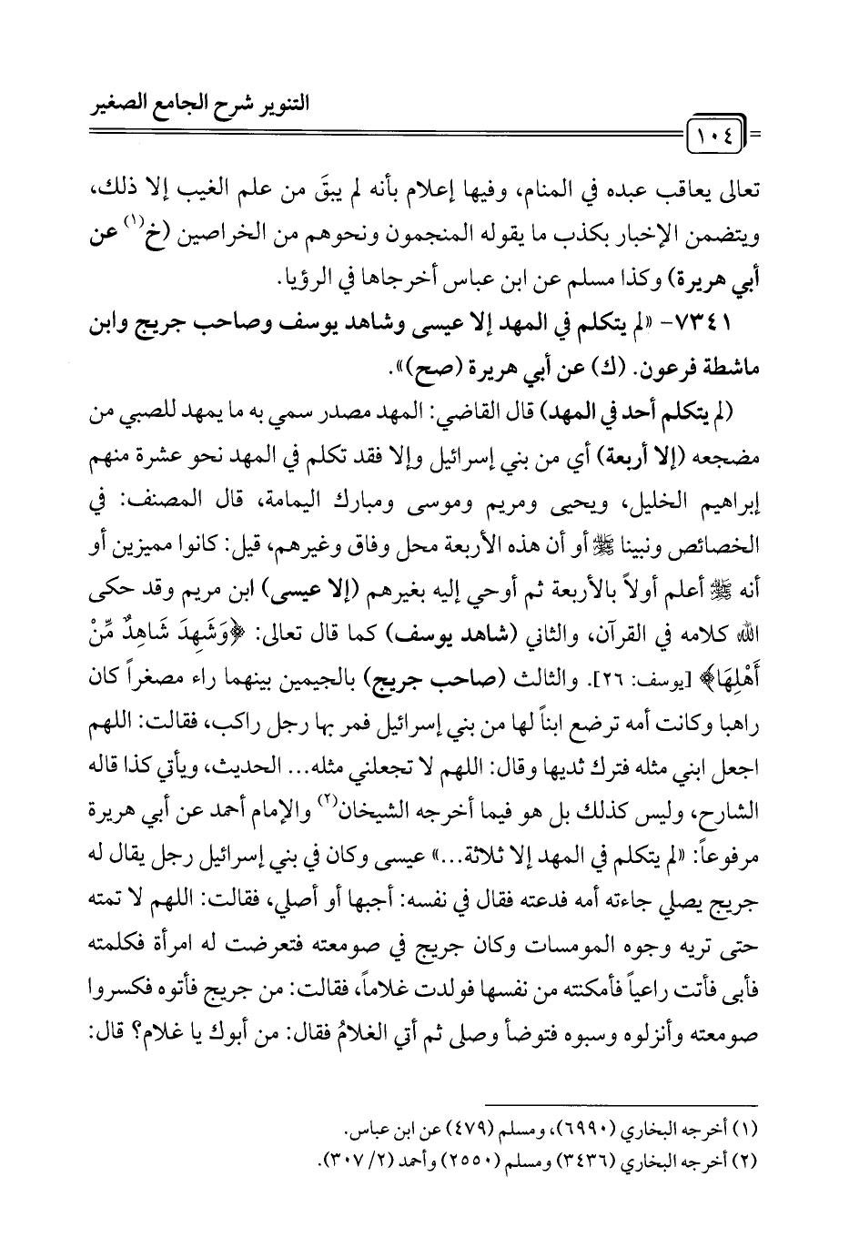 7341 - "لم يتكلم في المهد إلا عيسى وشاهد يوسف وصاحب جريج وابن ماشطة فرعون. (ك) عن أبي هريرة (صح) ".