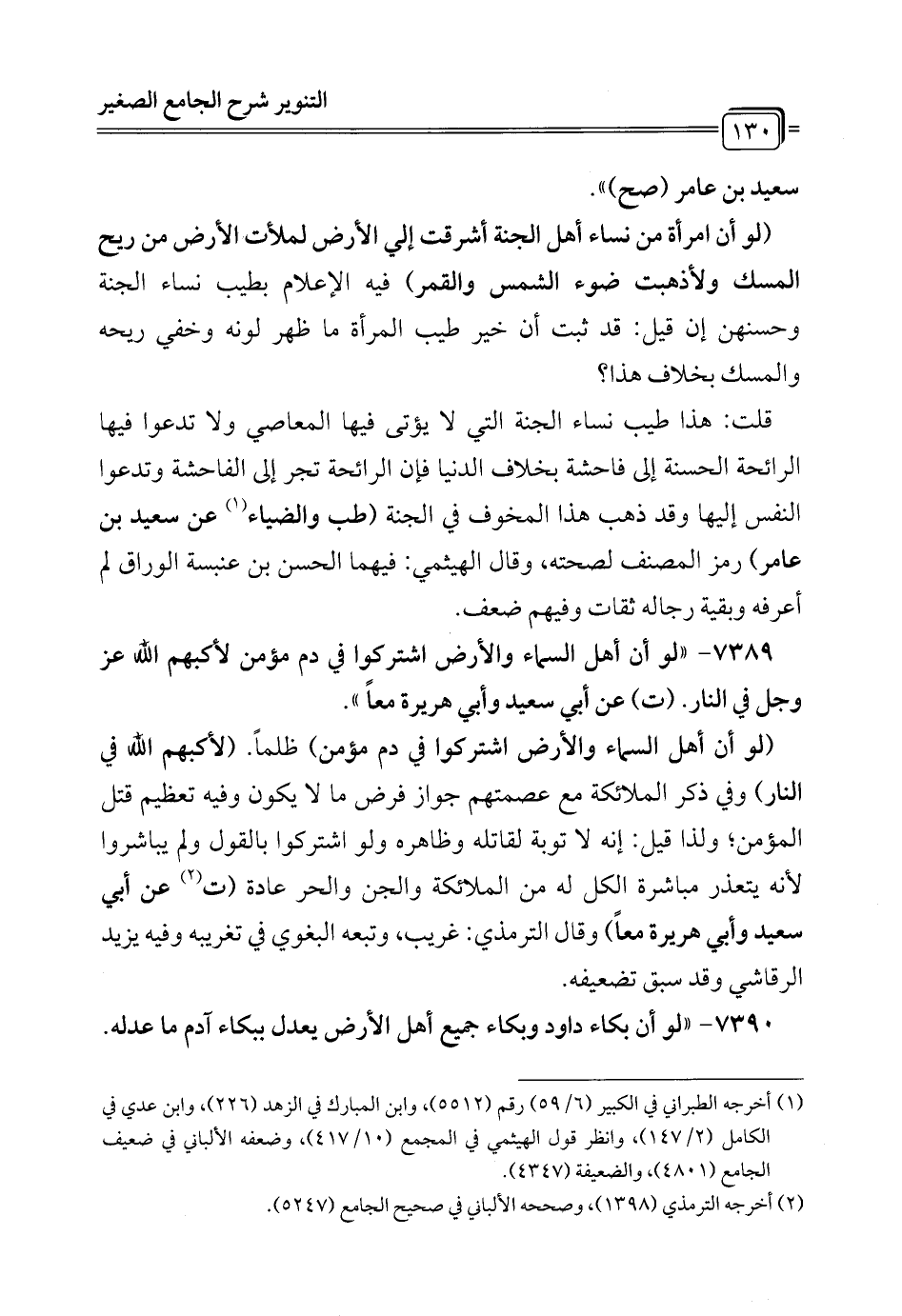 7389 - "لو أن أهل السماء والأرض اشتركوا في دم مؤمن لأكبهم الله عز وجل في النار. (ت) عن أبي سعيد وأبي هريرة معاً".