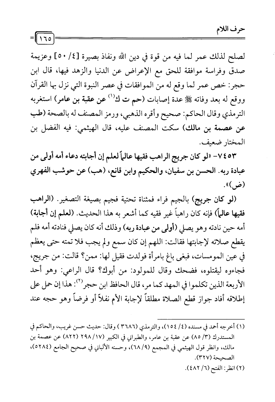 7453 - "لو كان جريج الراهب فقيها عالماً لعلم إن أجابته دعاء أمه أولى من عبادة ربه. الحسن بن سفيان، والحكيم وابن قانع، (هب) عن حوشب الفهري (ض) ".