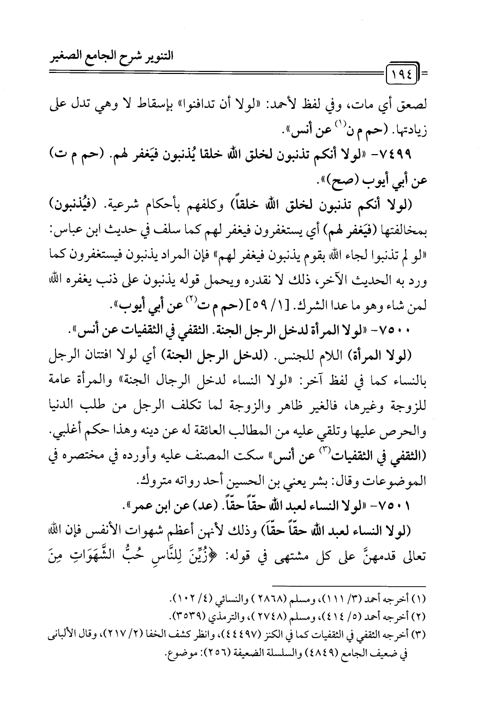 7500 - "لولا المرأة لدخل الرجل الجنة. الثقفي في الثقفيات عن أنس".