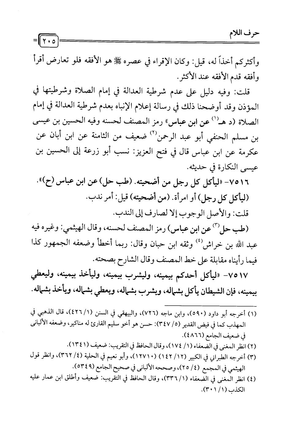 7516 - "ليأكل كل رجل من أضحيته. (طب حل) عن ابن عباس (ح) ".