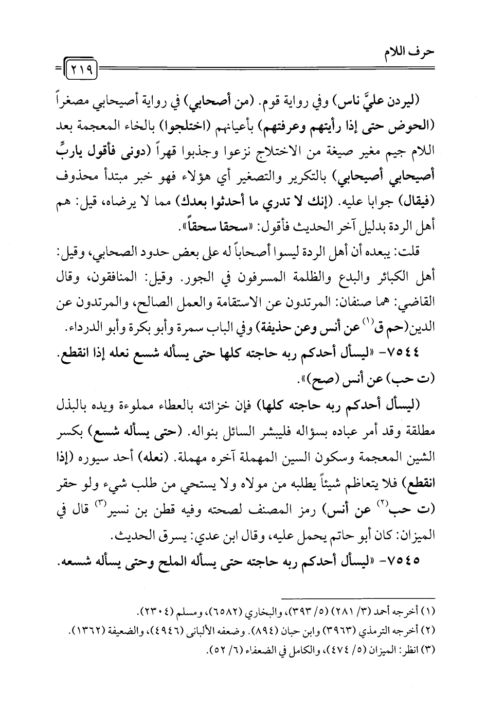 7545 - "ليسأل أحدكم ربه حاجته حتى يسأله الملح وحتى يسأله شسعه.