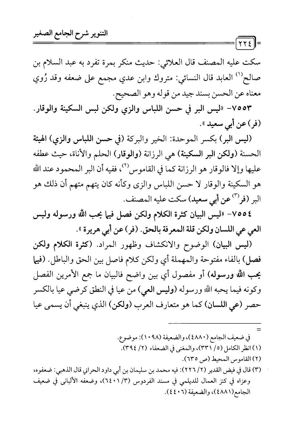 7553 - "ليس البر في حسن اللباس والزي ولكن لبس السكينة والوقار. (فر) عن أبي سعيد".