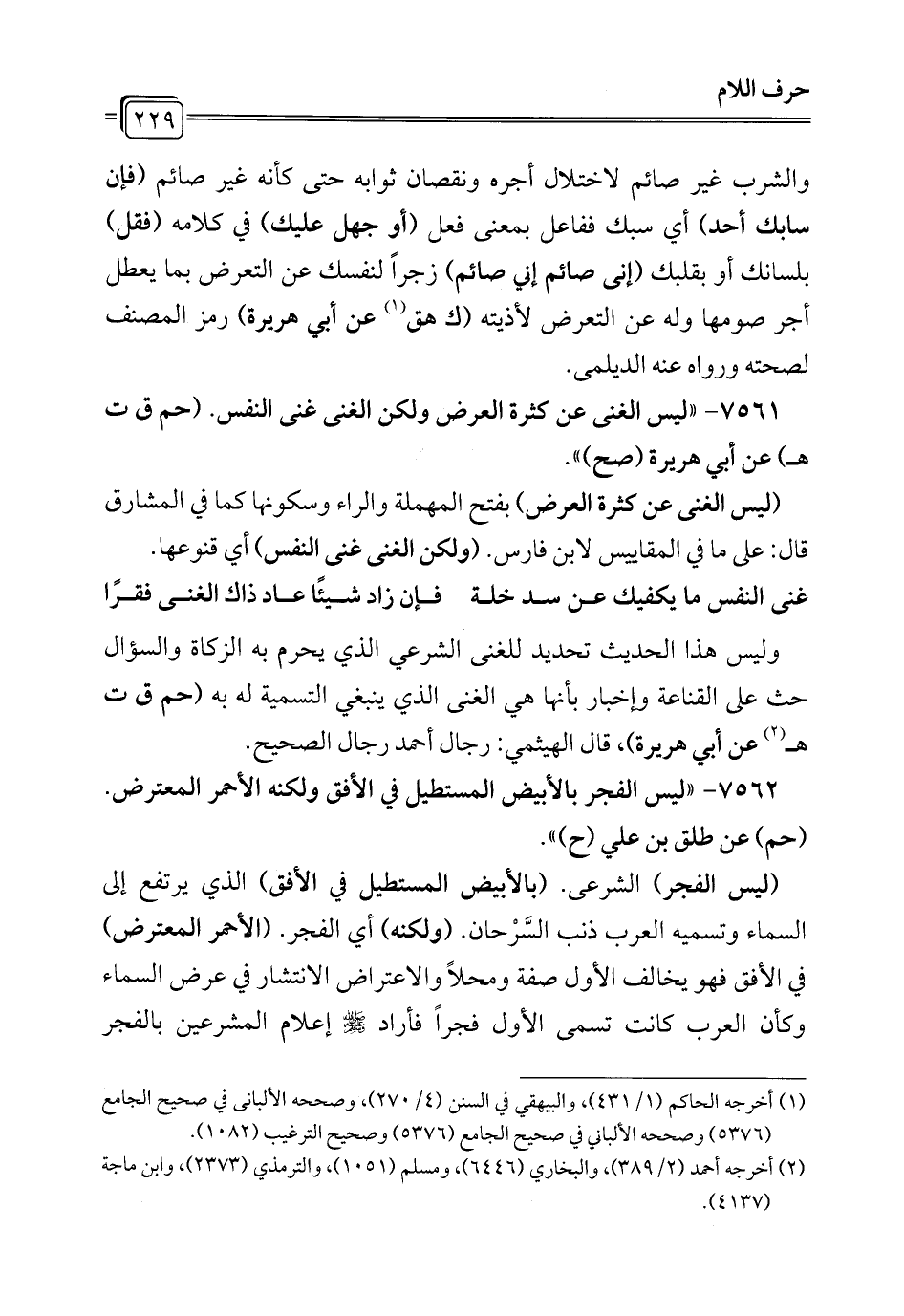 7561 - "ليس الغنى عن كثرة العرض ولكن الغنى غنى النفس. (حم ق ت هـ) عن أبي هريرة (صح) ".