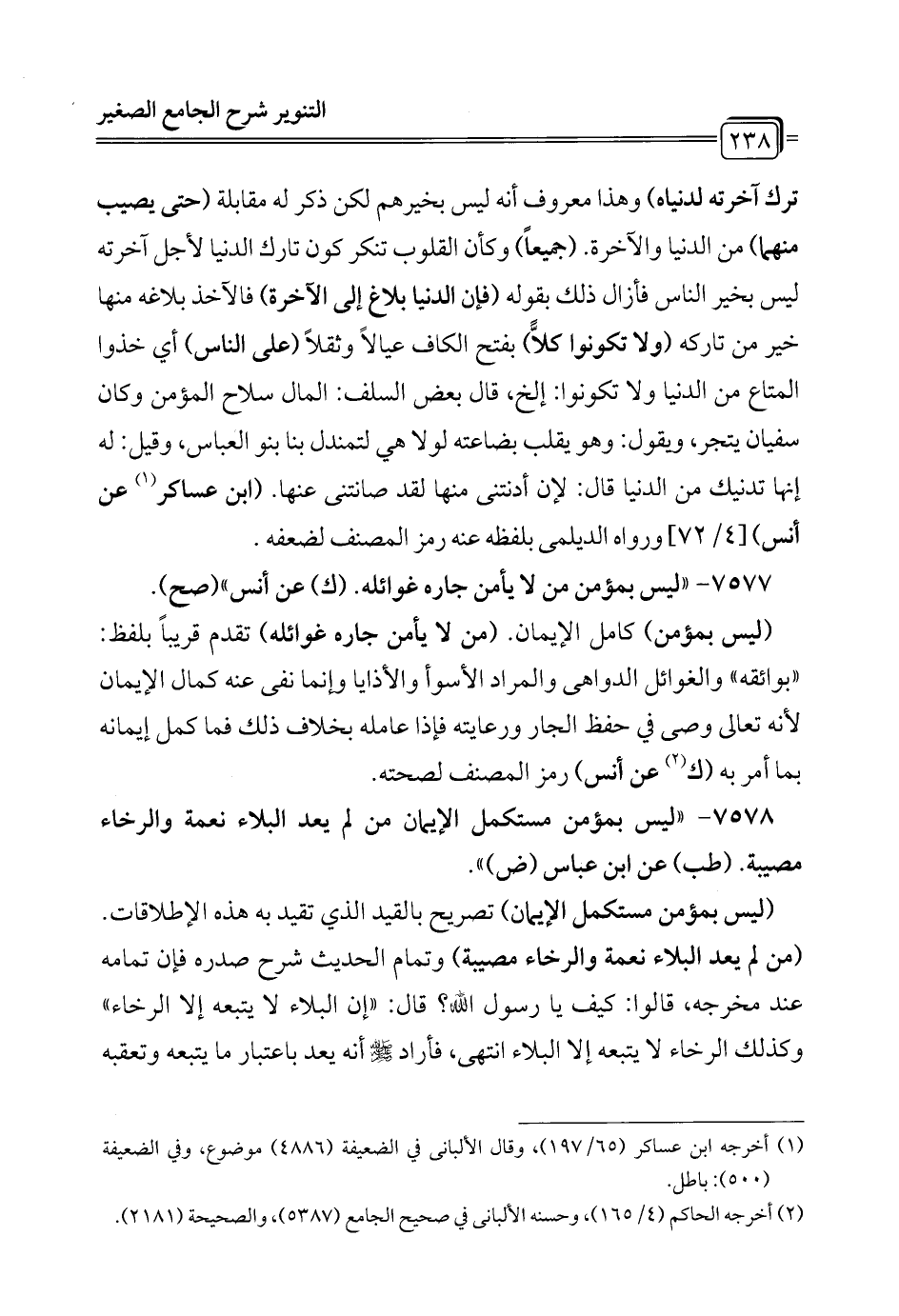 7577 - "ليس بمؤمن من لا يأمن جاره غوائله. (ك) عن أنس" (صح).