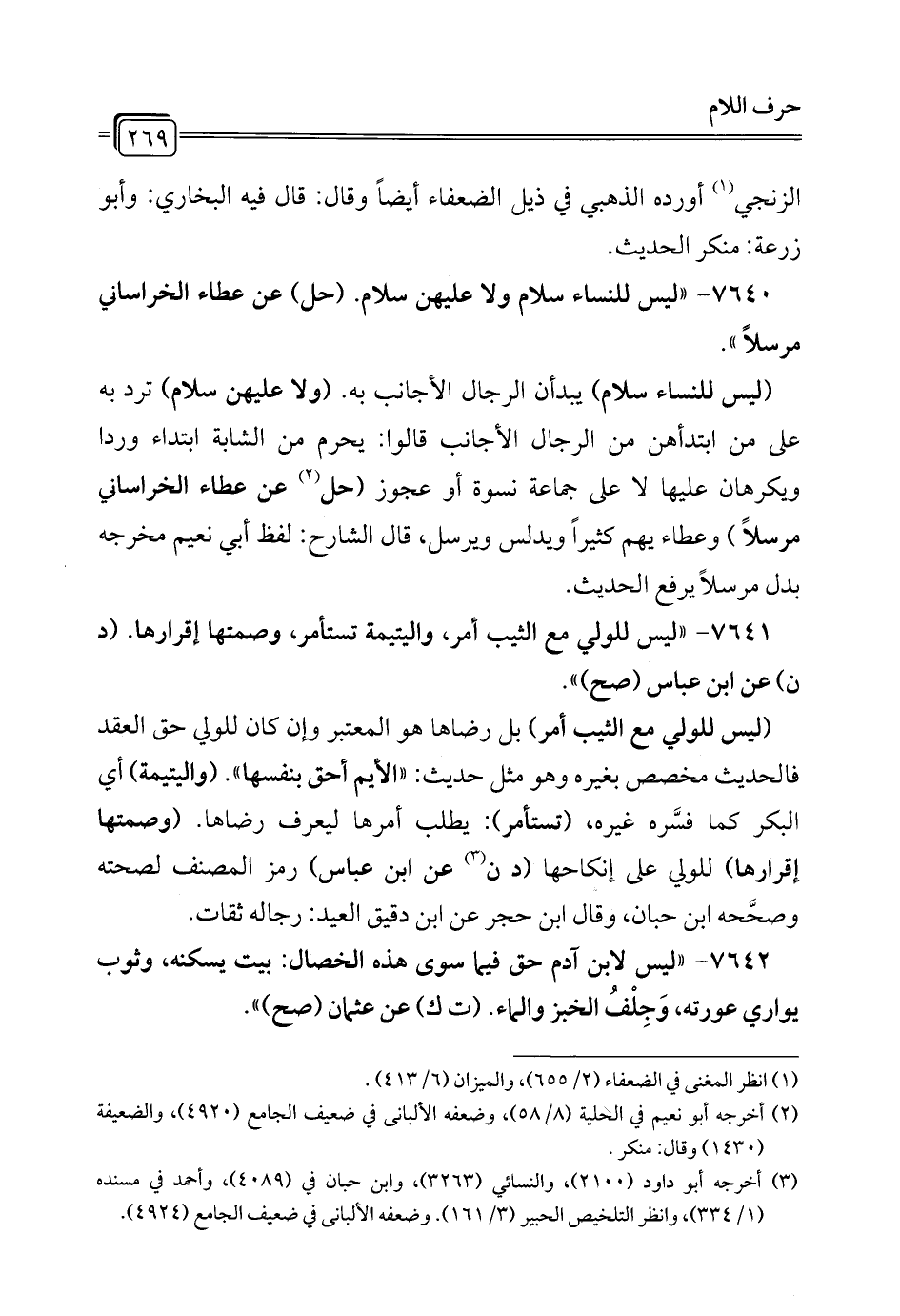 7640 - "ليس للنساء سلام ولا عليهن سلام. (حل) عن عطاء الخراساني مرسلاً".