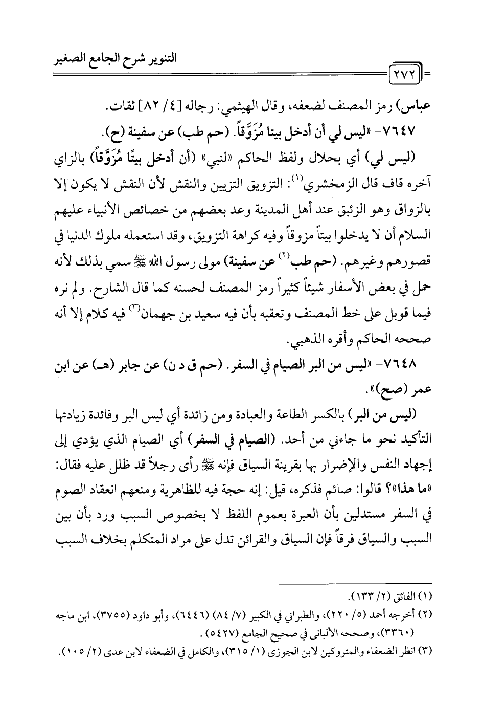 7648 - "ليس من البر الصيام في السفر. (حم ق د ن) عن جابر (هـ) عن ابن عمر (صح) ".