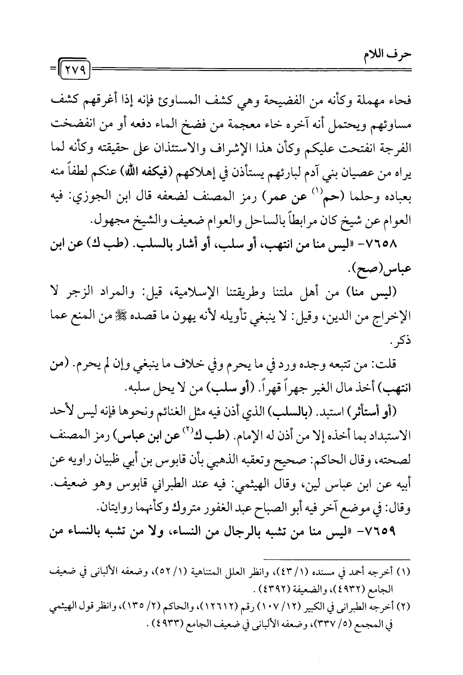 7659 - "ليس منا من تشبه بالرجال من النساء، ولا من تشبه بالنساء من