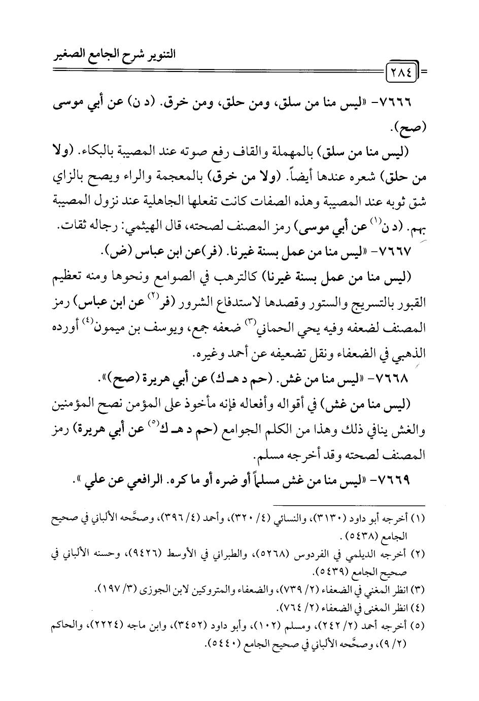 7668 - "ليس منا من غش. (حم د هـ ك) عن أبي هريرة (صح) ".
