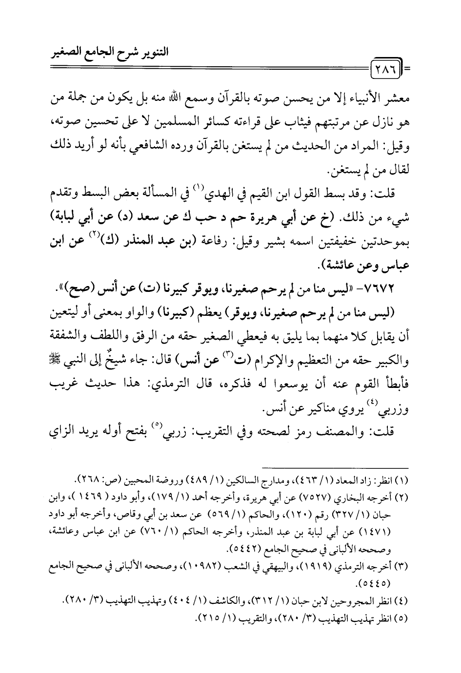 7672 - "ليس منا من لم يرحم صغيرنا، ويوقر كبيرنا (ت) عن أنس (صح) ".
