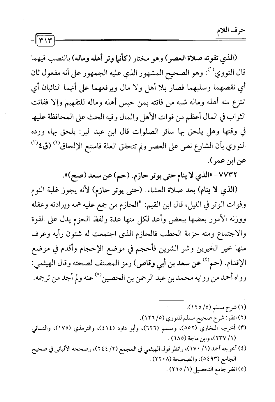 7732 - "الذي لا ينام حتى يوتر حازم. (حم) عن سعد (صح) ".