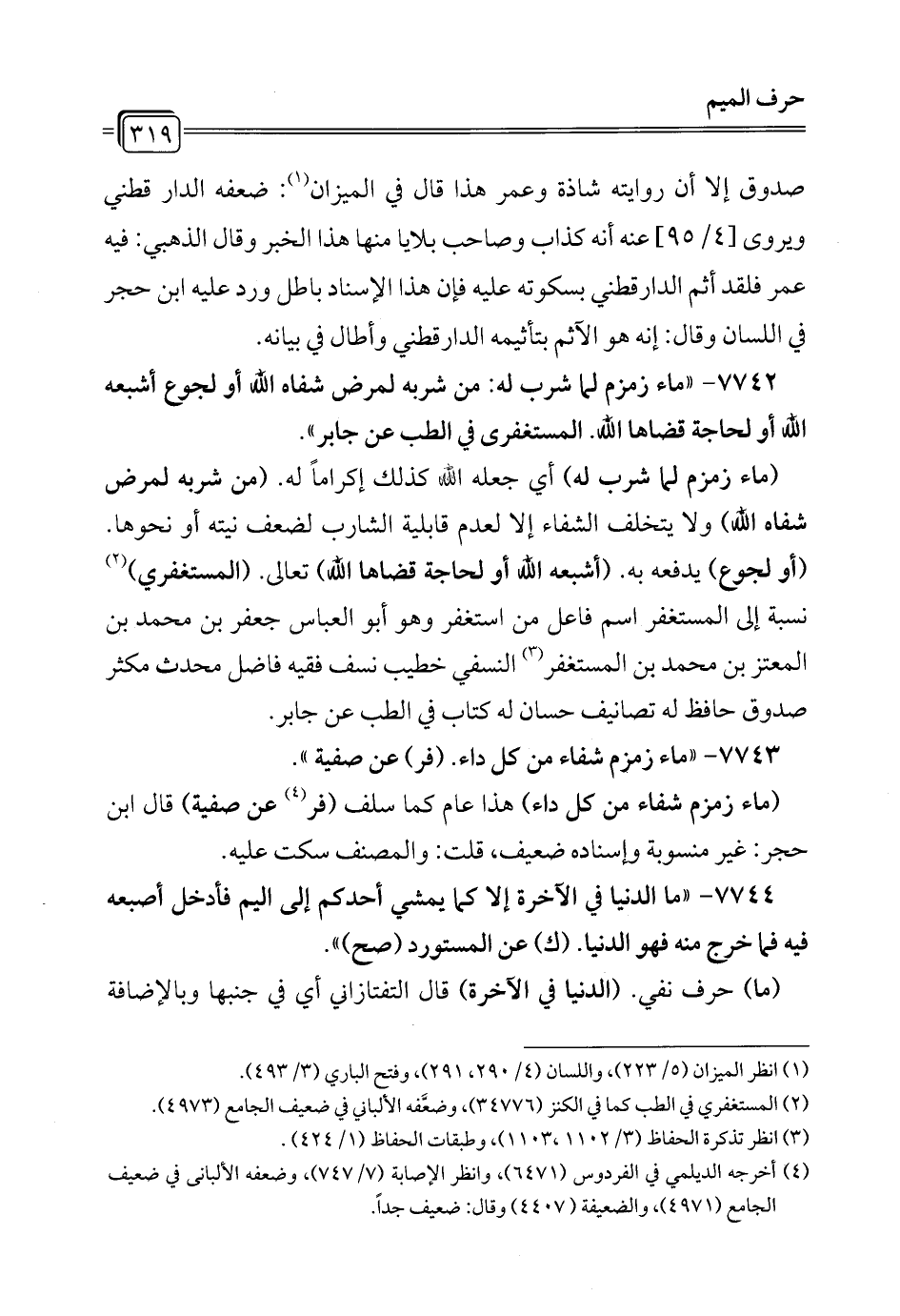 7743 - "ماء زمزم شفاء من كل داء. (فر) عن صفية".