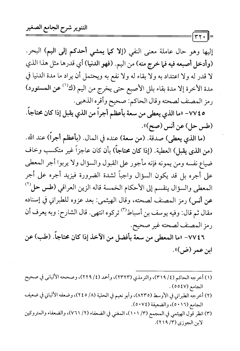 7745 - "ما الذي يعطى من سعة بأعظم أجراً من الذي يقبل إذا كان محتاجاً. (طس حل) عن أنس (صح) ".