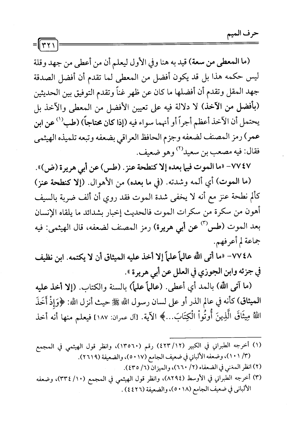 7748 - "ما أتى الله عالماً علماً إلا أخذ عليه الميثاق أن لا يكتمه. ابن نظيف في جزئه وابن الجوزي في العلل عن أبي هريرة".