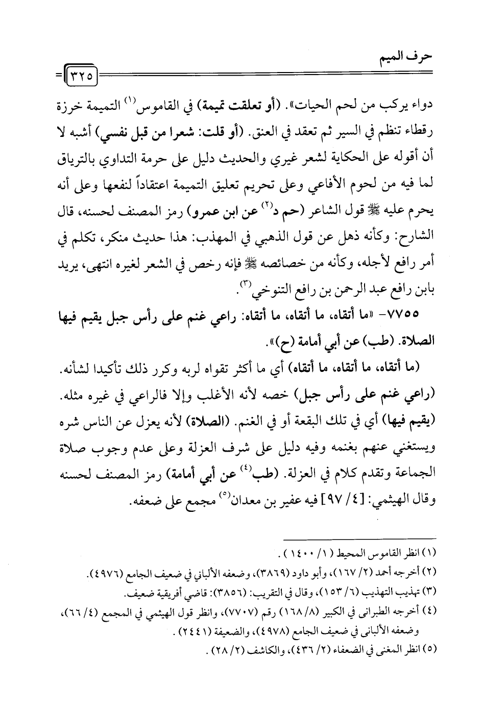 7755 - "ما أتقاه, ما أتقاه، ما أتقاه: راعي غنم على رأس جبل يقيم فيها الصلاة. (طب) عن أبي أمامة (ح) ".