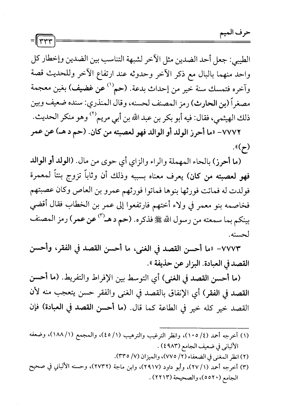7773 - "ما أحسن القصد في الغنى، ما أحسن القصد في الفقر، وأحسن القصد في العبادة. البزار عن حذيفة".